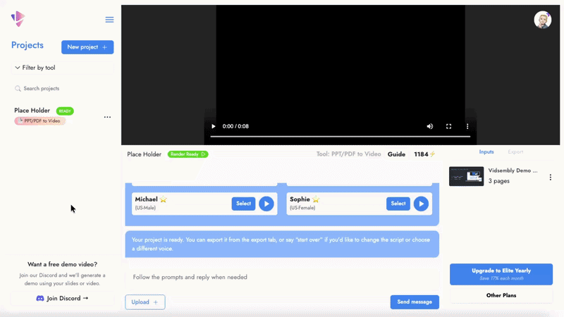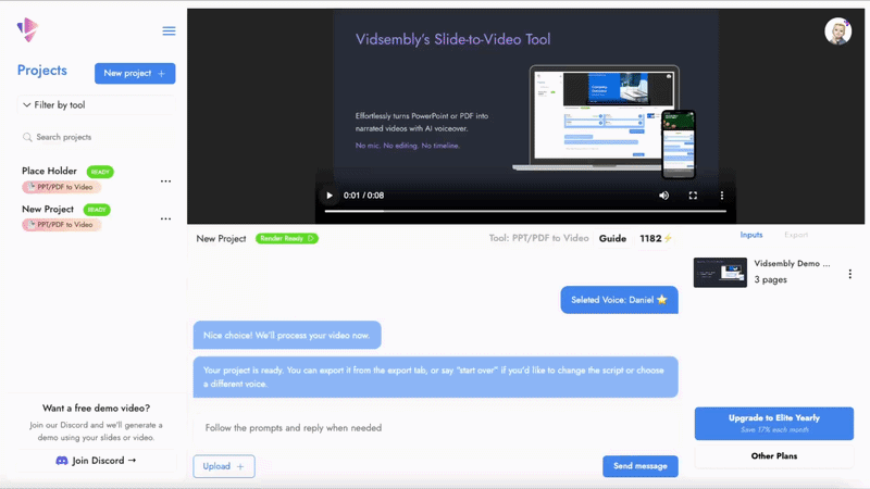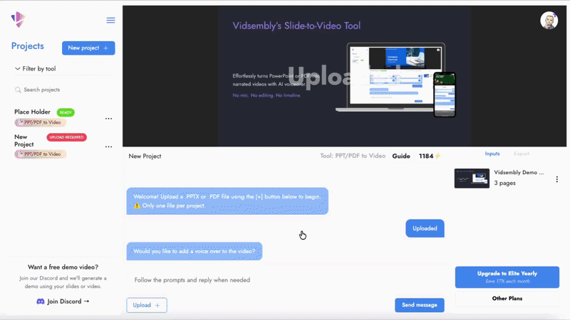 Send us your slide deck or video and we’ll generate a demo project so you can see the results before trying it yourself.